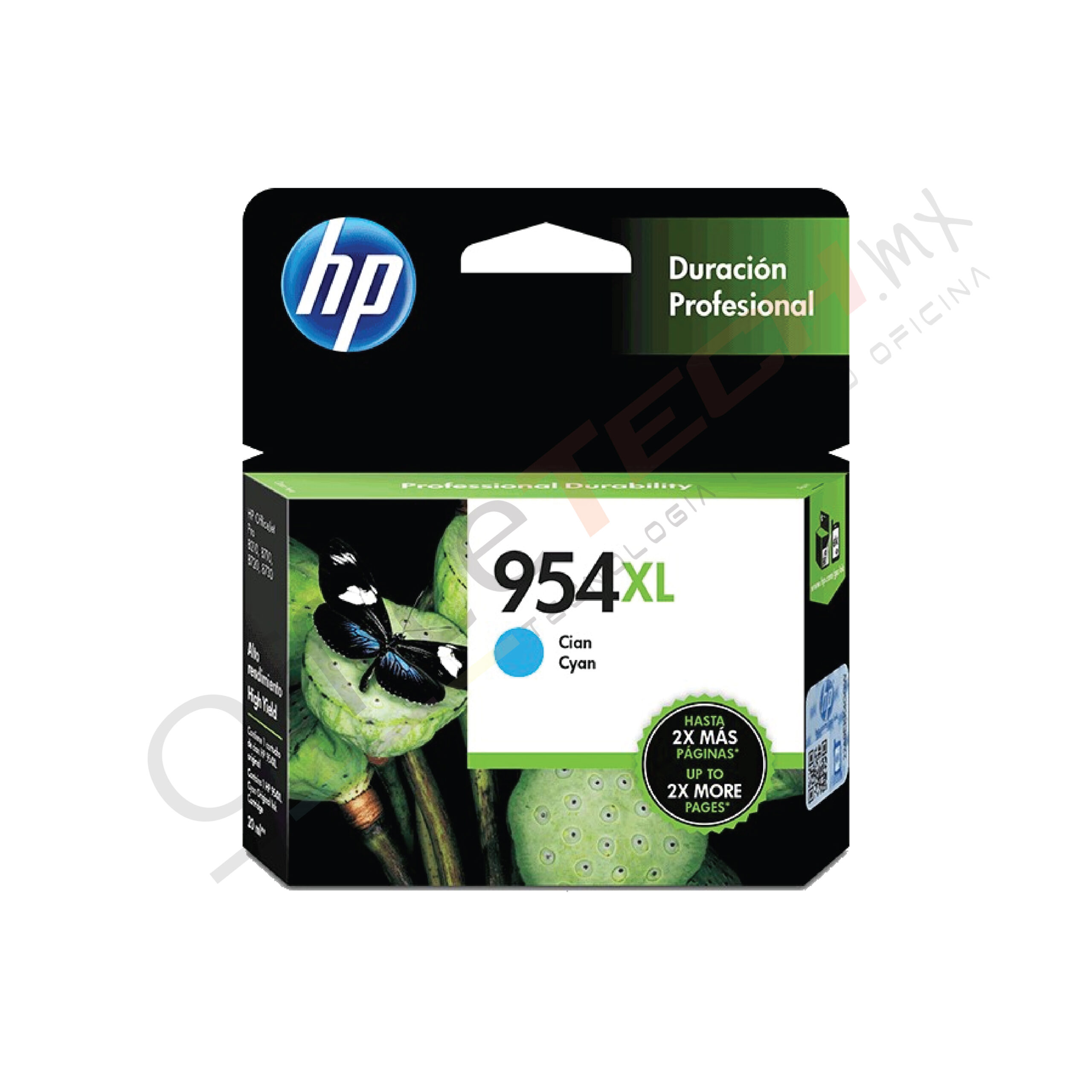 Cartucho de tinta de alto rendimiento HP 954XL, Cian (L0S62AL). Rendimiento aproximado de 1,600 Paginas @ 5%.