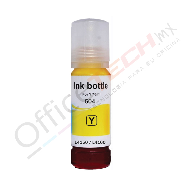 Botella de Tinta Genérica Compatible con Epson 504 (T504420-AL), Amarillo, 70ml. Rendimiento aproximado de 6,000 Páginas @5%.